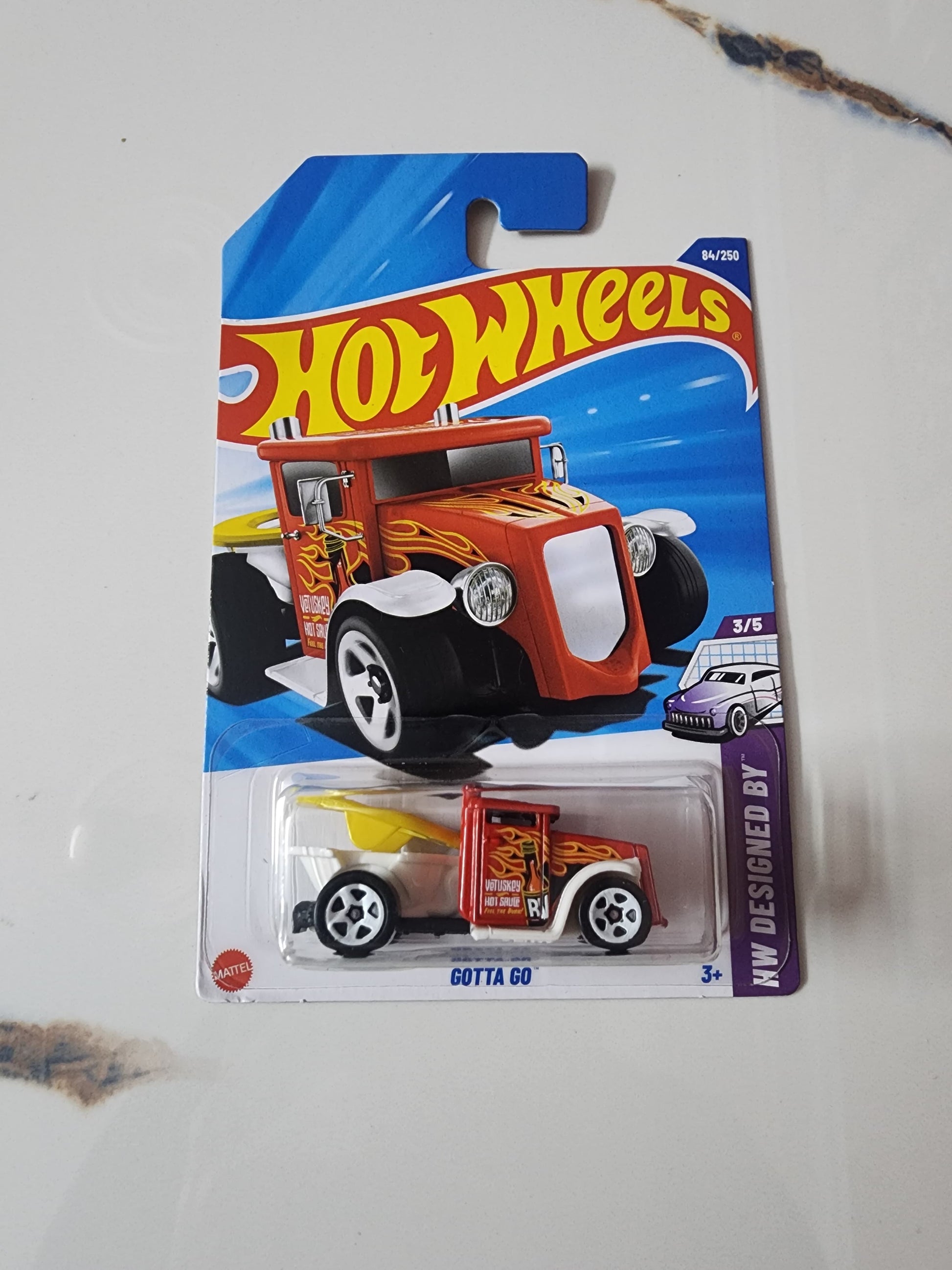 As a standout addition to the 2025 Hot Wheels mainline assortment, the Gotta Go rolls into your hands from the L Case. As a featured model in the "HW Designed By" mini-series, this casting celebrates the wild creativity of Hot Wheels' designers, proving that anything can be transformed into a high-octane ride! While the specific color for this L Case release will be a vibrant and eye-catching choice, expect it to be perfectly complemented by fun graphics that underscore its playful nature.