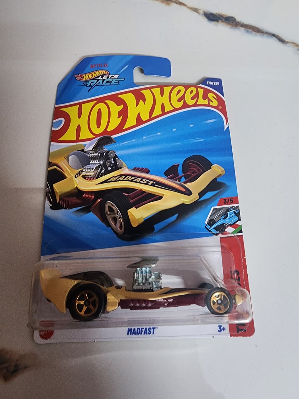 The Madfast returns in Hot Wheels’ 2025 Mainline H Case as part of the Track Aces series, numbered 170/250 overall. A Hot Wheels original casting first introduced in 2008, Madfast is a stylized rail dragster with an enclosed cockpit and exaggerated engine layout. Finished in Pearl Tan, this edition blends retro drag-strip energy with modern fantasy styling.