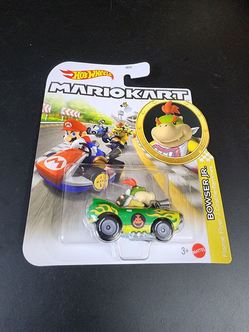 Hot Wheels partners with the legendary Mario Kart series to create authentic 1:64 scale die-cast replicas, designed for both captivating display and exhilarating track performance. Each character is expertly molded into their signature kart, perfectly optimized for speed, stunts, and imaginative play!