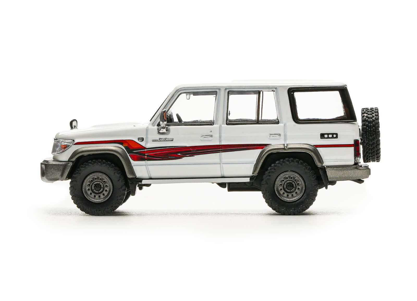 - White body finish with authentic Land Cruiser detailing